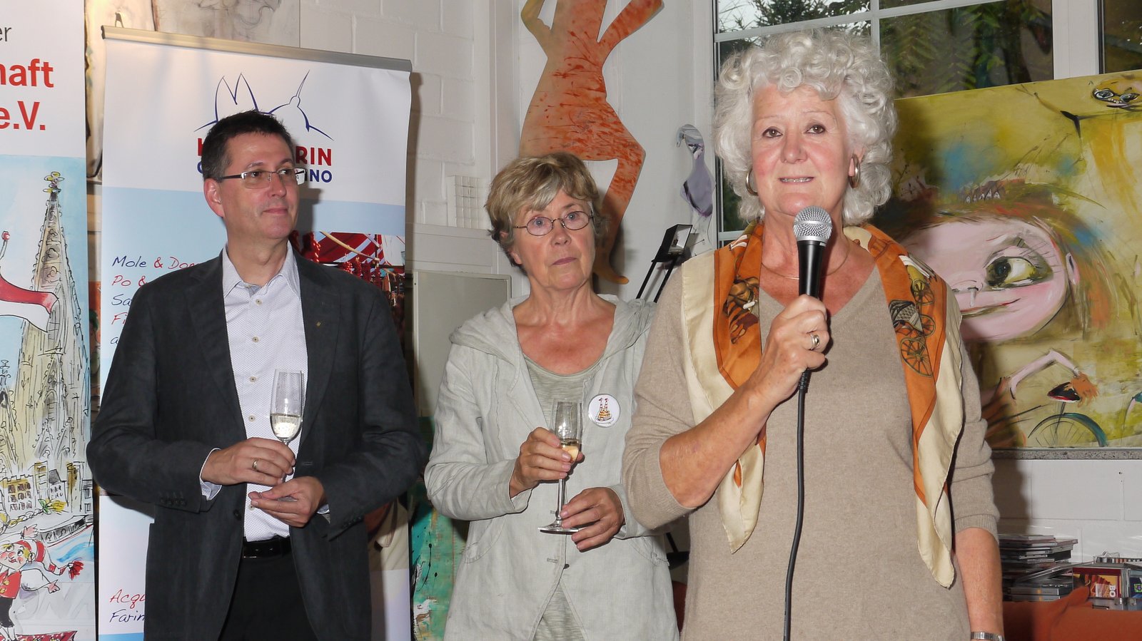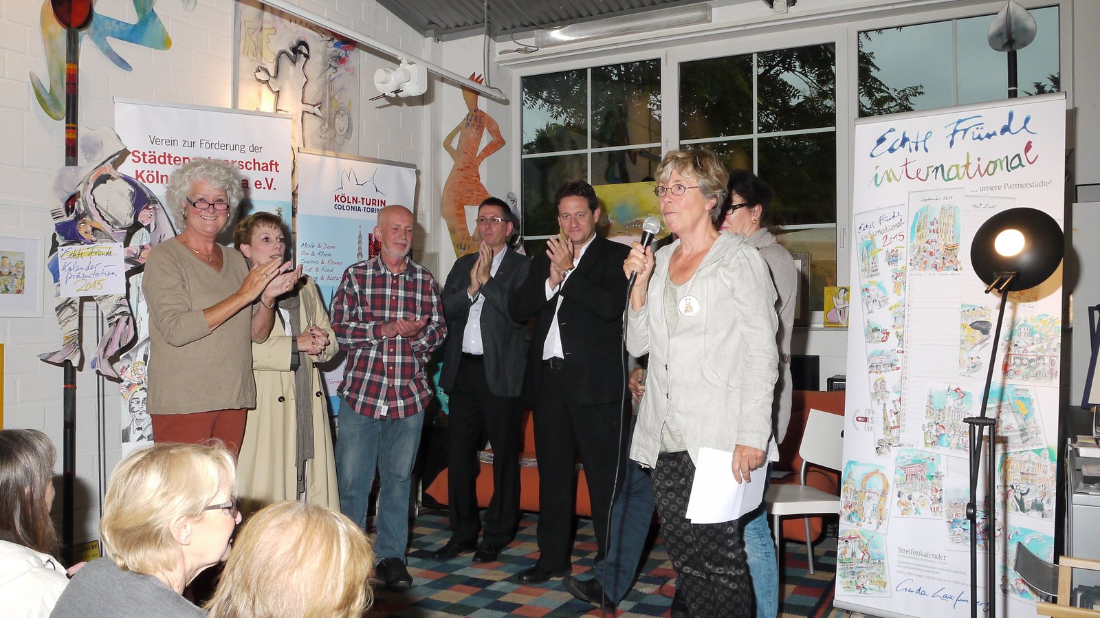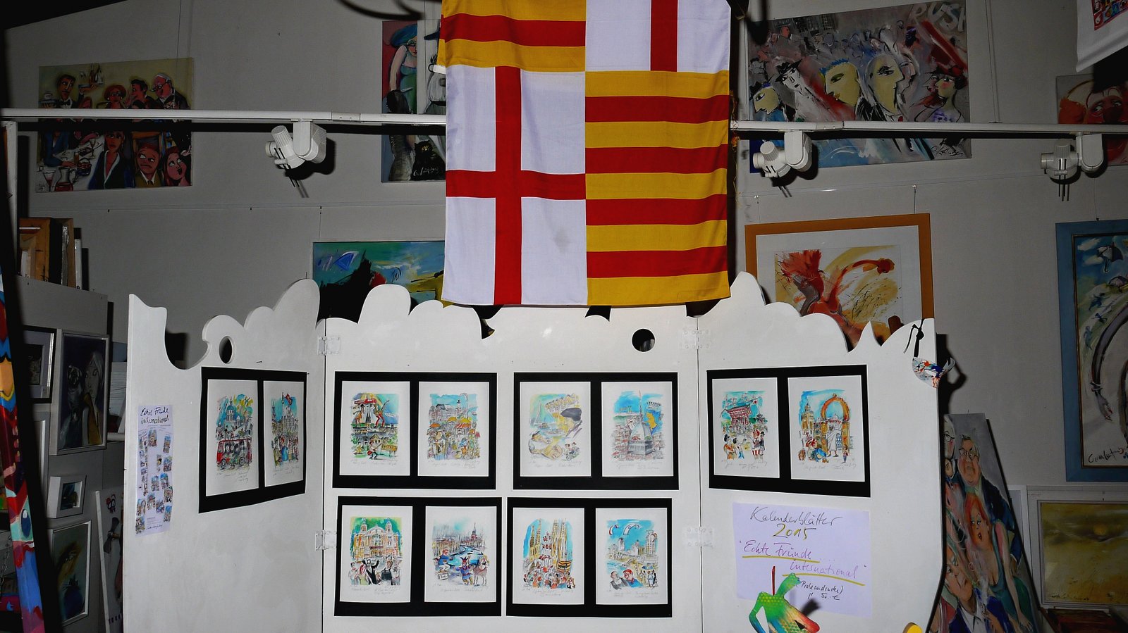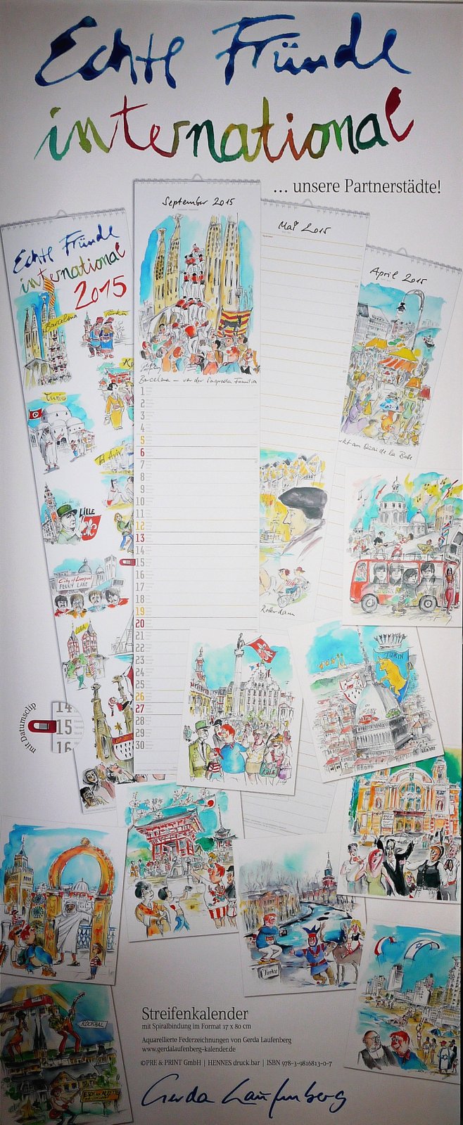 Die Kölner Künstlerin Gerda Laufenberg lud am 26.08.2014 zur Vorstellung ihres Kalenders für das Jahr 2015 mit dem Motto “Kölner Partnerstädte” in ihr Atelier ein. In diesem Jahr werden 12 von 24 Partnerstâdten in ihrem Kalender vorgestellt. Weitere 12 Städte folgen 2016.